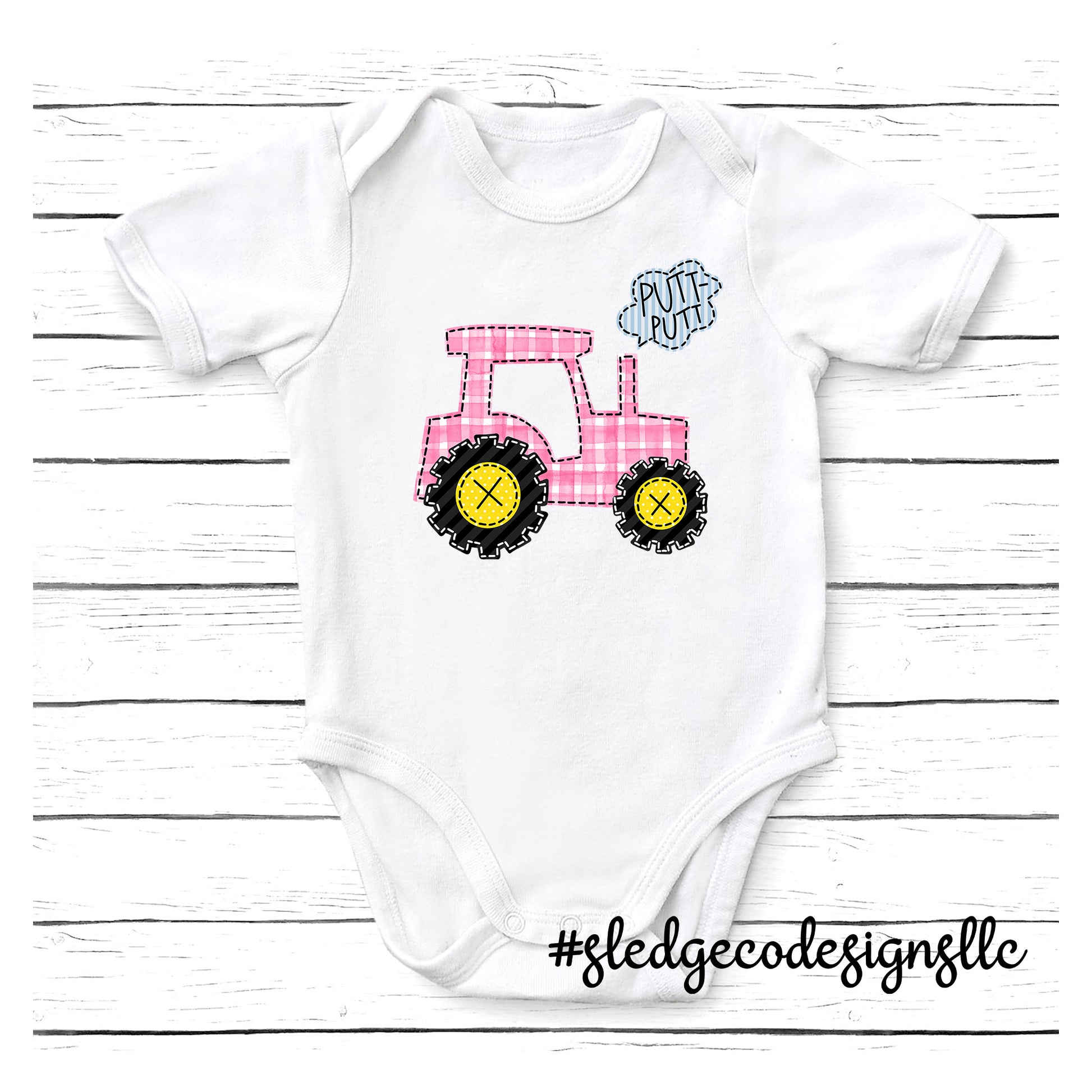 Little PINK Tractor Faux Applique | Southern GIRLS onesie | CUSTOM Infant Jersey Short Sleeve One Piece